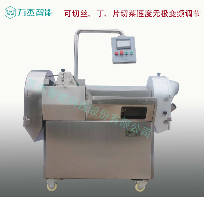 ■產品特點: 離心式切片機構適用于瓜薯類硬菜的切片,片厚可在一定范圍內自由調節,豎刀部分可將葉類軟菜或切好的片加工成不同規格的塊、丁、菱形等各種形狀。切菜長度可通過PLC觸摸屏在一定范圍內任意調整。因豎刀模擬手工切菜原理,加工表面平整光滑,成形規矩,所切蔬菜的組織細胞不被破壞,可保持原有的新鮮。 該機操作簡單,維修方便,適應性強,便于掌握,是理想的蔬菜加工設備。 切菜速度可無極變頻調速。